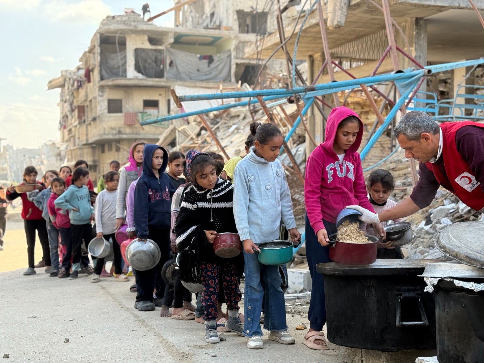 9. Abladen der Hilfsgüter und Versorgung der Bevölkerung in Gaza. International Red Cross and Red Crescent Movement.